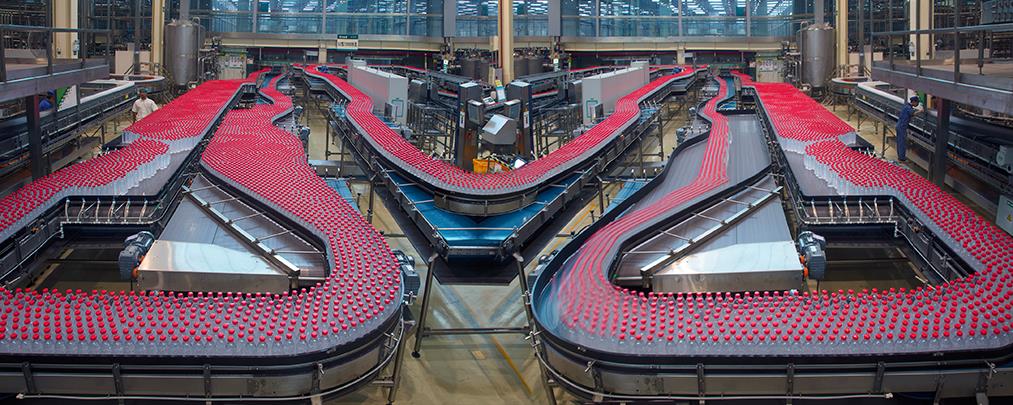 饮料生产车间,又叫无菌生产线, 它每小时54000瓶产能,是饮料生产的顶级配置,该生产线采用中央控制系统,对于设备的操作仅需要在中控室完成,生产线可以实时记录和检测关键指标,设备运作流程。设备的任何一个调整、任何异常都在我们的操控中。